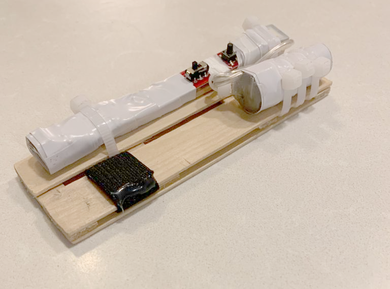 For the rest of the project, I designed the pieces with tinkercad. Later, I printed them out with my Prusa 3d printer. I connected all the pieces to some wood with glue and zip ties. I protected the electronics with some electric tape.