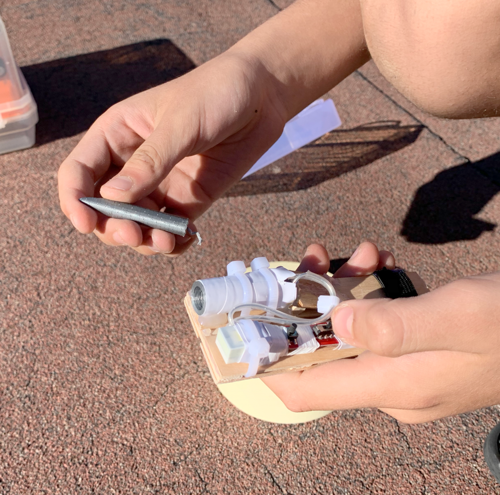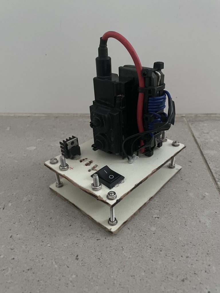 How I built it was simple, the firecrackers had a fuse, so I needed a way to light it and a barrel to put the rocket in. For the ignition I used an arc lighter, which creates a small electric arc that can light things on fire.