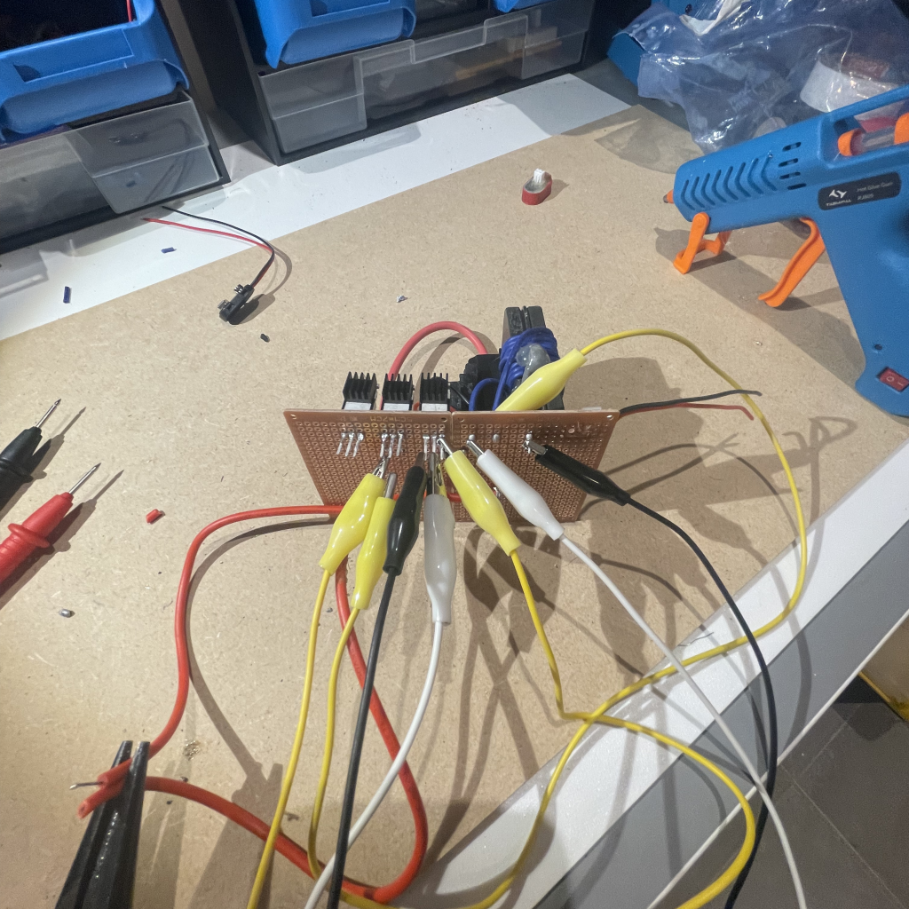 First, to make sure my circuit was working I attached all the components to a prototype board and connected them with alligator clips.